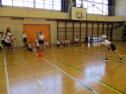 今年は、伊勢崎市陸上教室記録会が中止になったため、5・6年の希望者60名で「陸上3種競技チャレンジ」を行っています。これは、短距離走、立ち幅跳び、ソフトボール投げを行うことで体力向上を図るものです。今日は短距離走のためのトレーニングをゲームを取り入れて行いました。みんなとても生き生きと活動し、気持ちの良い汗を流していました。