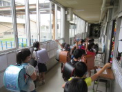 総合の授業で、アイマスク体験をしました。視覚障害者の立場になり気づいたことを社会で活かすための授業です。アイマスクを付けたまま、各自で自分の名前を書いたり、体育館シューズに履き替える体験をした後、二人一組のペアになり、お友達の案内で手を洗ったり、水を飲みに行ったりしました。案内の声だけが頼りの移動に四苦八苦。「全然見えない。」「こわくて歩けない。」という声の中、「あ、水のにおいがする。」「ひんやりしてきた。」と,視覚以外の感覚に気づけた人もいました。この後、疑問に思ったことをまとめ、活動内容と感想を個人新聞に仕上げることになっています。