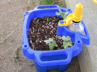 1年生ではアサガオの観察をしています。 植木鉢に植えた種から、芽が出て少しづつ大きくなっています。 毎日、欠かさずに水をあげることができていて、立派ですね。